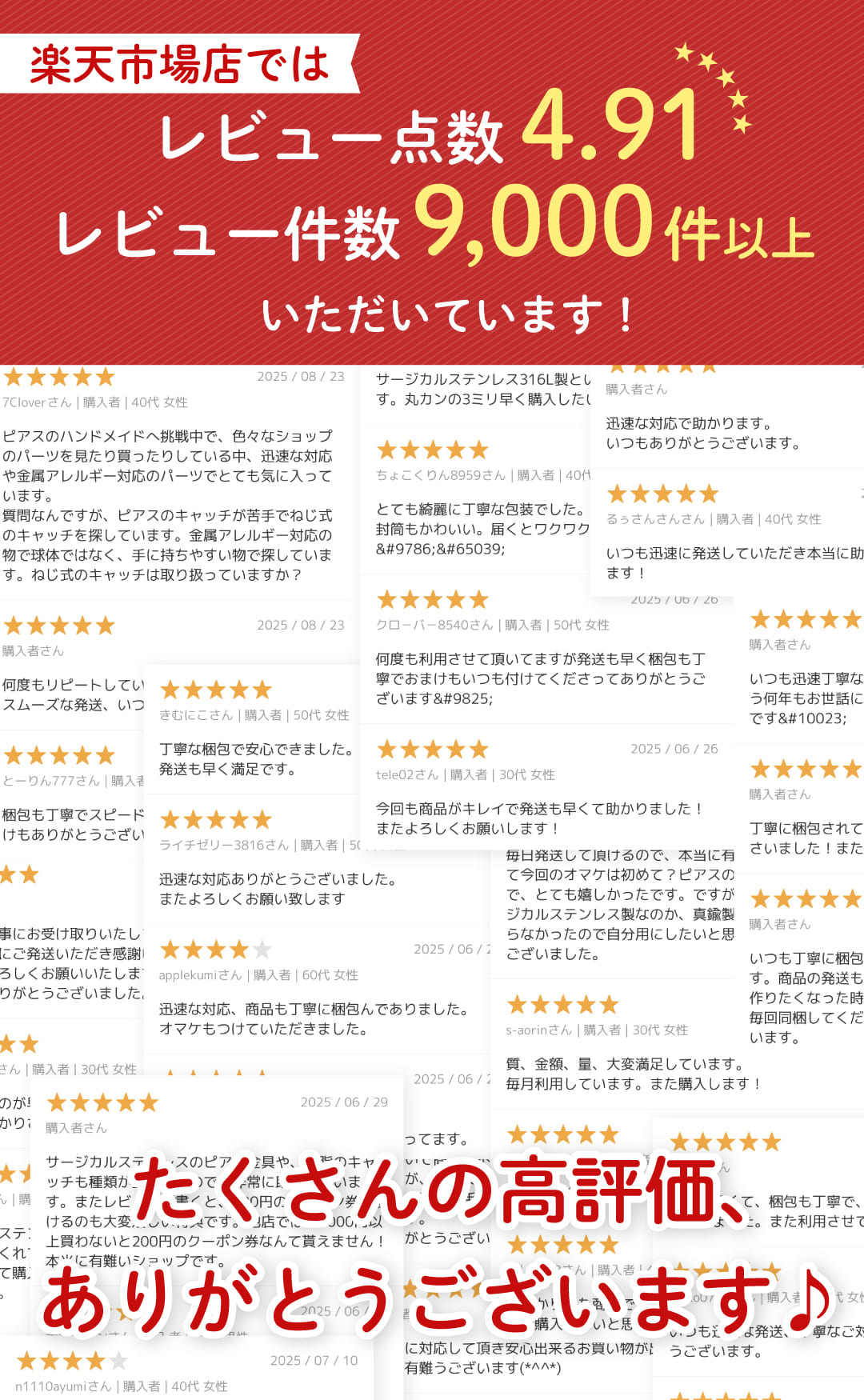 アクセサリーパーツ イヤリング ピアス の専門店 【ピンクゴールド通販広場】。金属アレルギー対応の高品質ステンレスパーツ、ピアスパーツやイヤリングパーツを豊富に取り揃えてます。