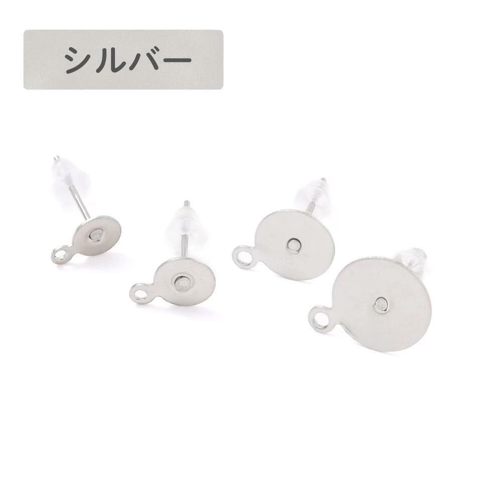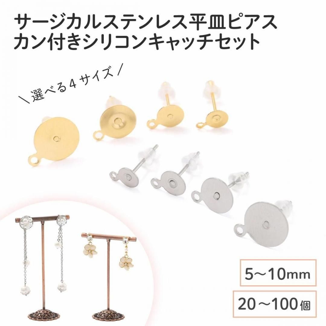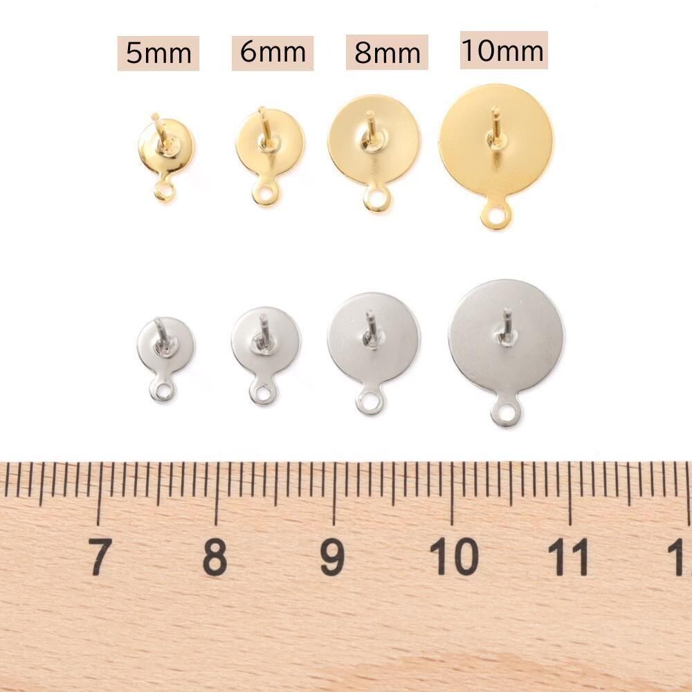 【サージカルステンレス 316 】 平皿ピアス ×八の字キャッチ 3mm 4mm 5mm 6mm 8mm 10mm ゴールド シルバー ピンクゴールド 20個〜100個 台座 丸皿