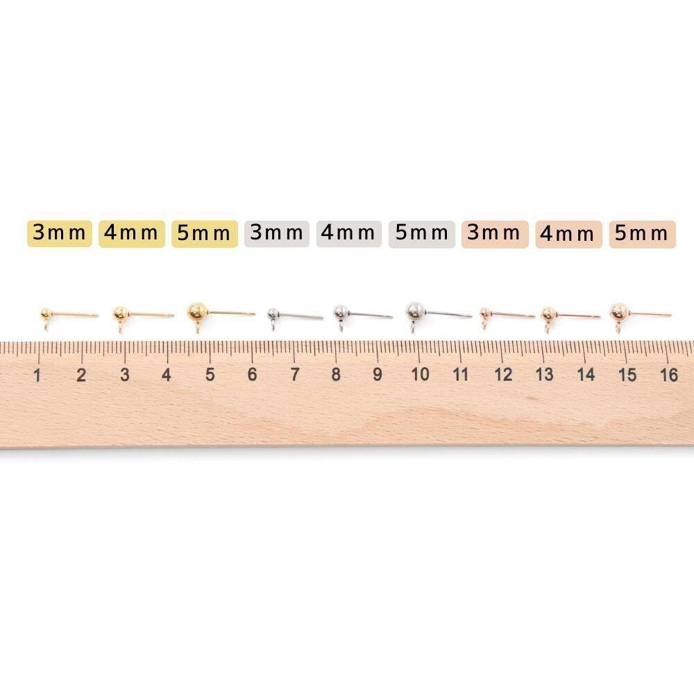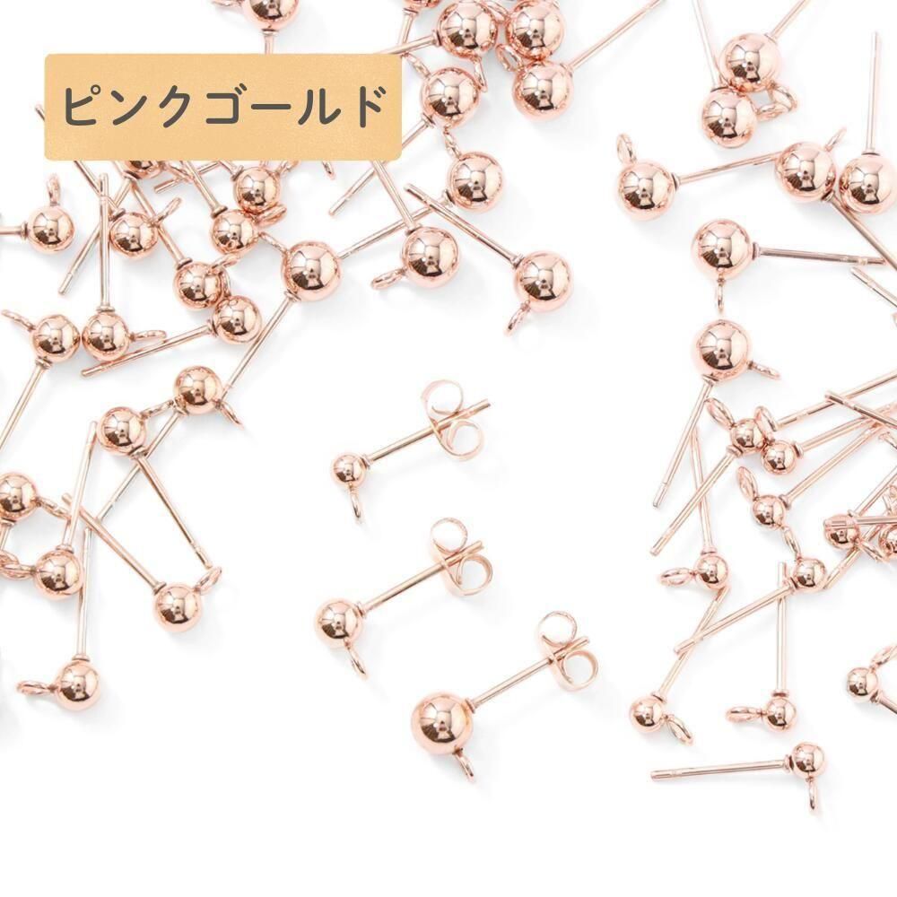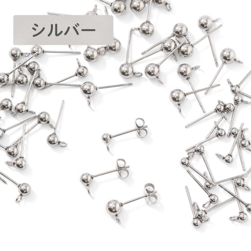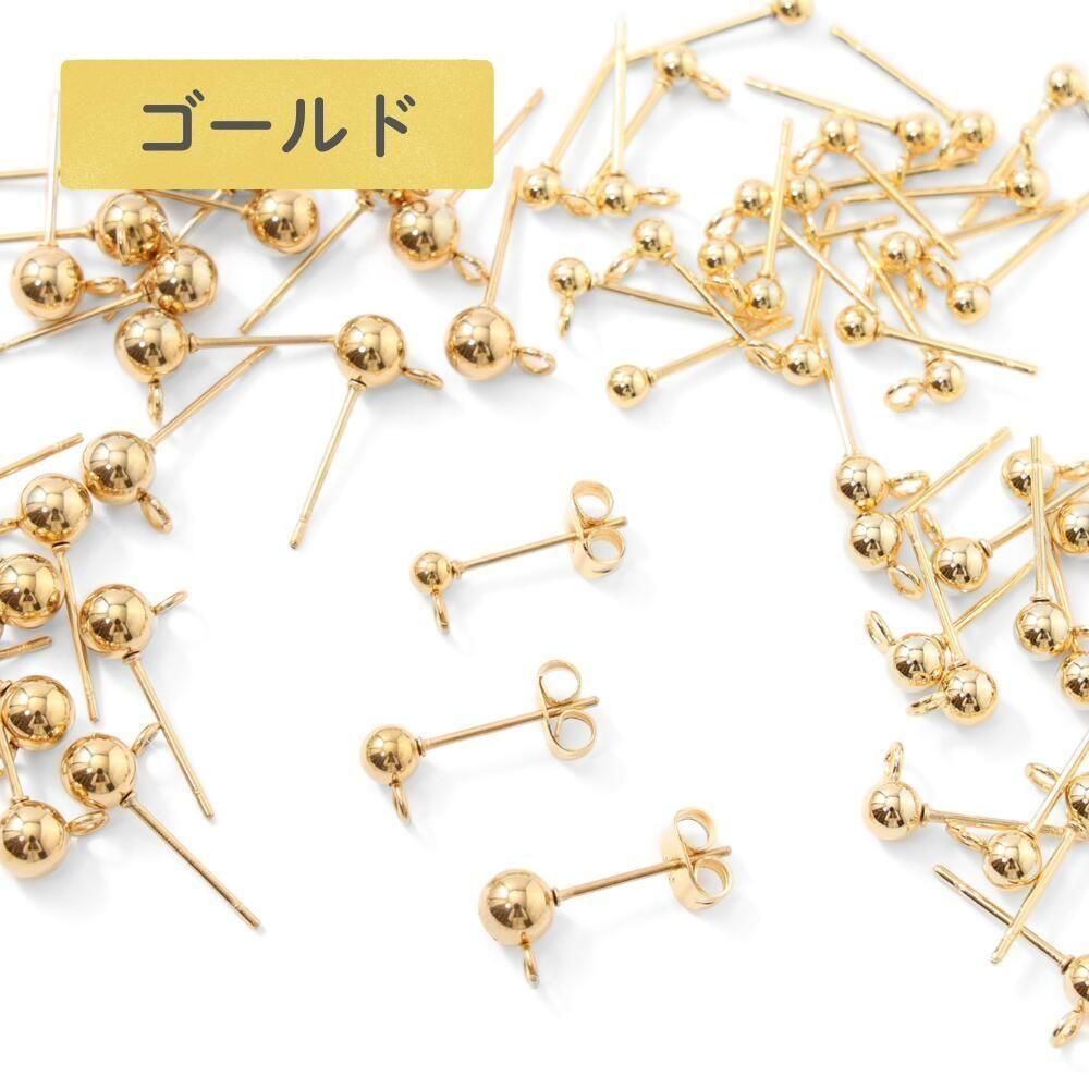 【サージカルステンレス 316 】 カン付き ボール ピアス ×八の字キャッチ ゴールド シルバー 3mm 4mm 5mm (カンの向き:縦) 4個〜100個 ステンレス パーツ 金具