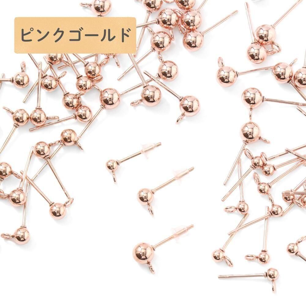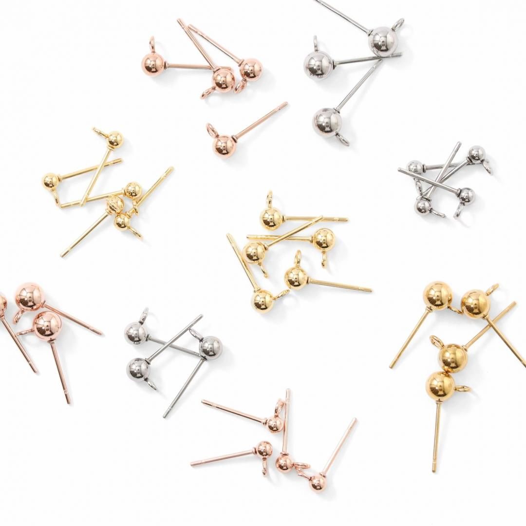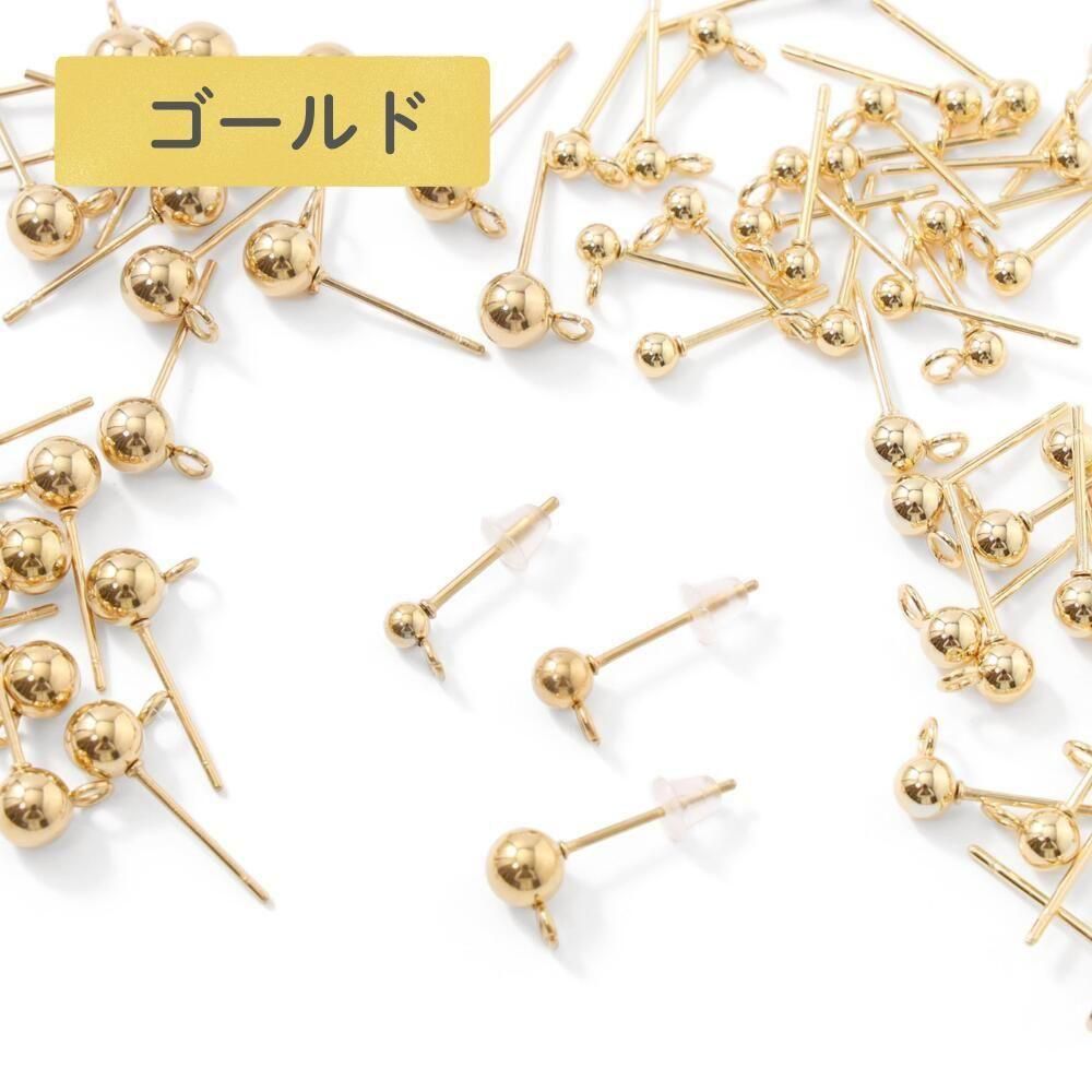 【サージカルステンレス 316 】 カン付き ボール ピアス ×八の字キャッチ ゴールド シルバー 3mm 4mm 5mm (カンの向き:縦) 4個〜100個 ステンレス パーツ 金具