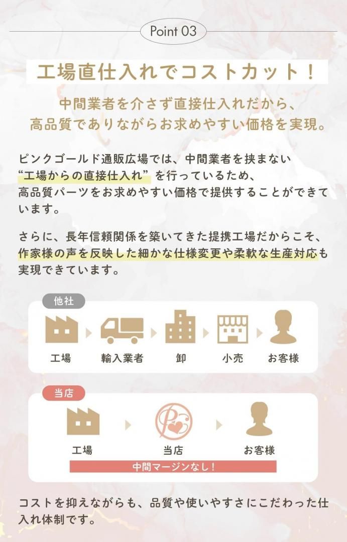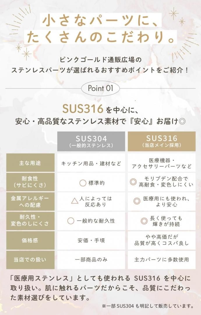 アクセサリーパーツ イヤリング ピアス の専門店 【ピンクゴールド通販広場】。金属アレルギー対応の高品質ステンレスパーツ、ピアスパーツやイヤリングパーツを豊富に取り揃えてます。