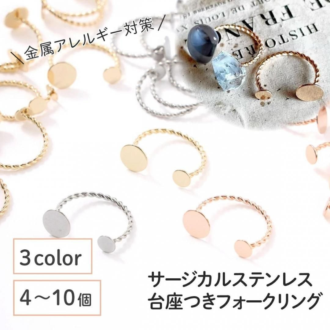 【サージカルステンレス 316 】 リング パーツ ゴールド シルバー ピンクゴールド タイプA 4mm / 6mm / 8mm 4個〜10個 指輪 台座 ハンドメイド 金具 手芸 パーツ