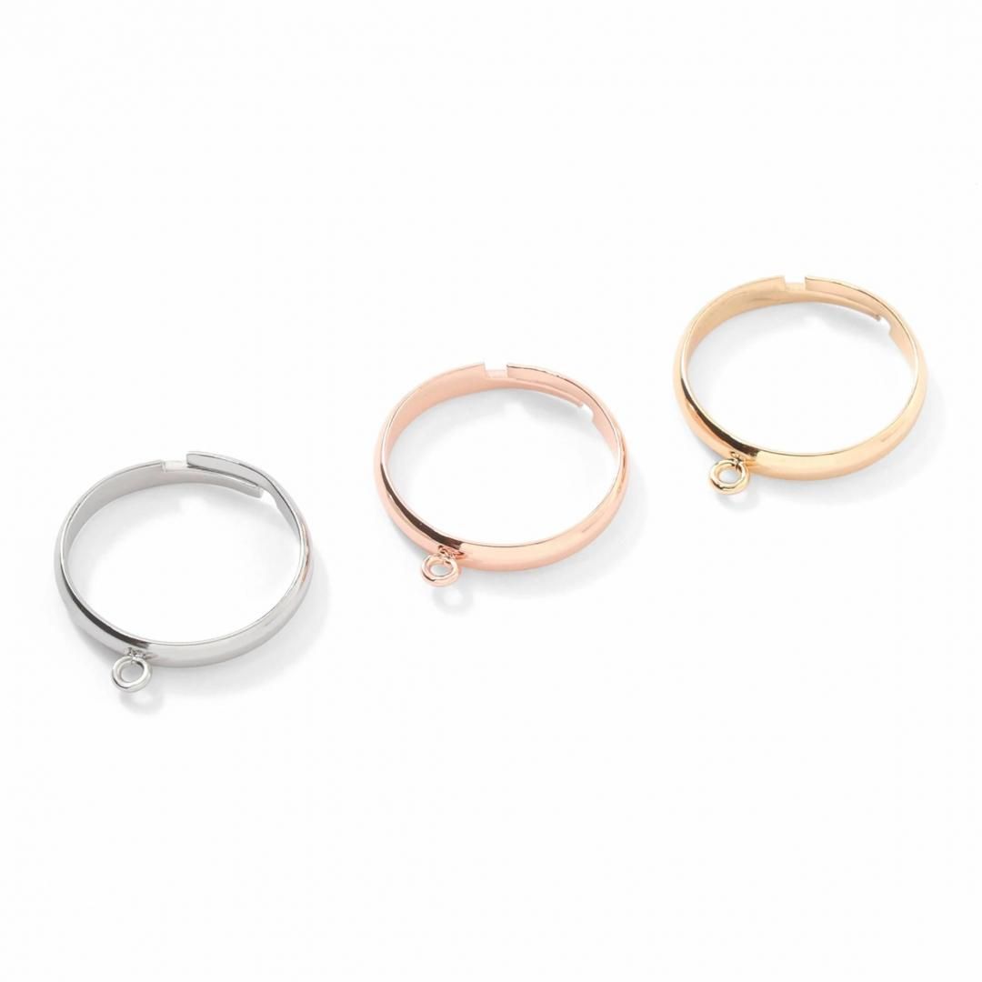 カラー:ゴールド、シルバー、ピンクゴールド/数量:4個、10個/カン部分3mm、厚み:3mm/フリーサイズリング、リングゲージ:12号/材質:JIS規格サージカルステンレス316