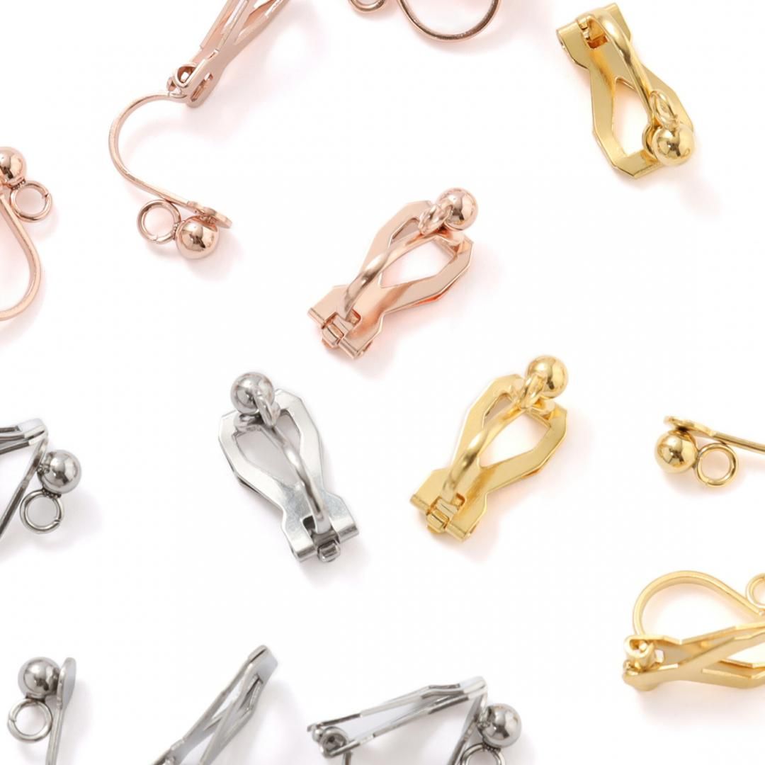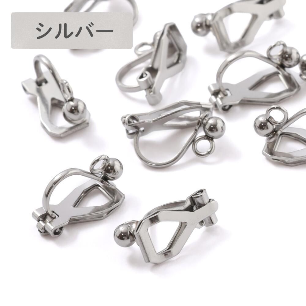 【サージカルステンレス 316 】 クリップ式イヤリング 丸玉 カン付き ゴールド シルバー ピンクゴールド 4個(2ペア)〜10個(5ペア) ステンレス 金属アレルギー対策 アクセサリー パーツ
